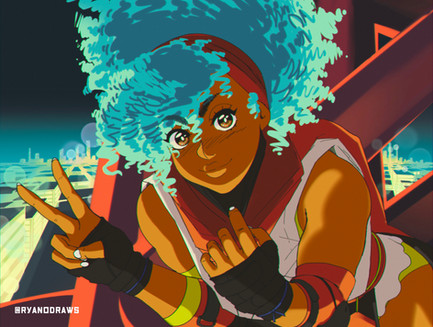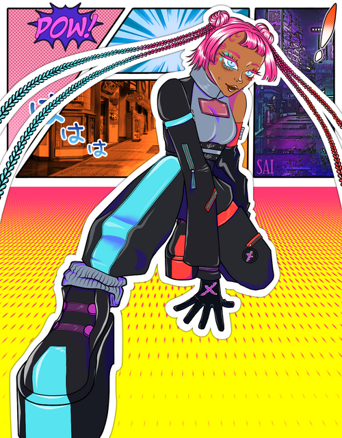 #bluehair #cap #darkskin #finger #girl #gloves #jacket #map #pink #shirt #domundia #headgear #microphone #orangeeyes #darkskinnedgirl