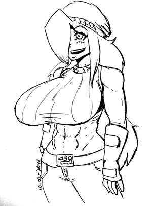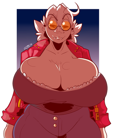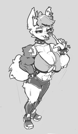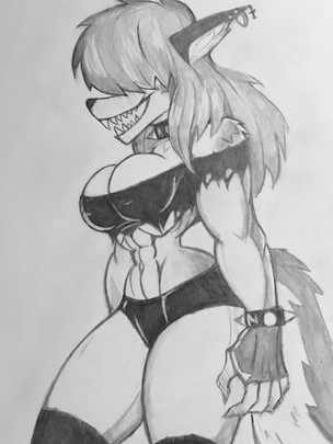 #brassknuckles #caption #cleavage #fangs #girl #jacket #ponytail #shark #sharkgirl #trackjacket #blackandwhite #hugebreasts #largebreasts #monochrome #pointyears #tracksuit #underboob