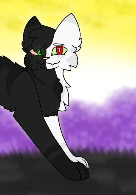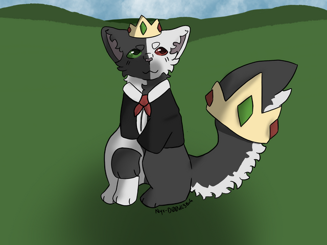 I don't like the way I draw humans to show it to others so here is a cat ranboo design instead. I some other drawings of members o the dsmp as cats like technoblade, philza, wilbur, tommy, tubbo, Dream, Shlatt, BadBoyHalo, Skeppy and Captain Puffy and ghostbur(for those two, I don't like what I drew X) )But for now, here's Ranboo our beloved, so, black and white fur, red and green eyes, crown, scars under his eyes because when he cries, it hurts, and thought of making the markings on his chest look like a smile... don't know if it really looks like one.