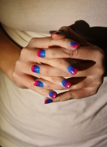 I had to file them down, and was left with only a piece of rainbow..it was like..a tiny sliver of blue and then a big gap of my new nail. xD