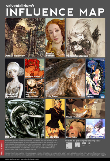 These are what influence me right now. If I had to tell you what influenced me when I was younger, it'd just be a crapload of cartoons that don't air anymore. (And I'm not so enthusiastic about them anymore so it'd be a bore for me, not to mention rendering this map useless.)Wanna keep this short so: