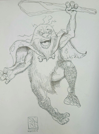 These are Killmoulis, very bizarre and ugly Hobbs. They live underground and are not very sophisticated when it comes to Hobbs. They are a little more wild and shy, kind of like nicer Gollums from LotR. They have no mouths and eat by putting stuff in their nose. I don't think they talk. But I'll get into those details once I make the Compendium. I imagine that have pale yellow to pale green skin and about 2 feet tall.Related content
