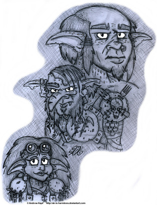 They remind me of warcraft's kobolds who were rodentlike(with candle heads) and more timid then evil in any real way. I really like these designs. The male one of course reminds me of someone rather smashing. [link]