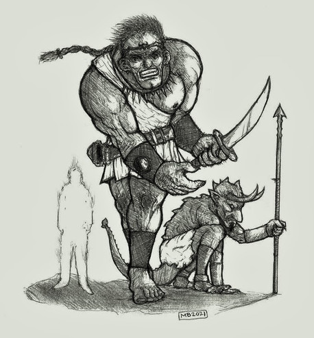 Kobolds, or German Gnomes. I think Kobolds are like Gnomes but less inquisitive and more scrappy and shy. I don't think Kobolds are as mechanically inclined as Gnomes, but they are unparalleled miners and smiths. Dwarves probably like them more than Gnomes.I imagine they are about 2.5 feet tall with brown skin and white hair. I made them a little scrappy and less human than Gnomes giving them tails and horns. These Kobolds are more in line with old traditional Kobolds than D&D's "Reptilian Dragon-kin". I don't know where in the hell they read that, I still have not found anything yet linking Kobolds to dragons or reptiles. I think that was a purely D&D invention. But in Mid-world I want as authentic as I can reasonably get. I also don't think Kobolds are evil or mean. They can be grouchy though.