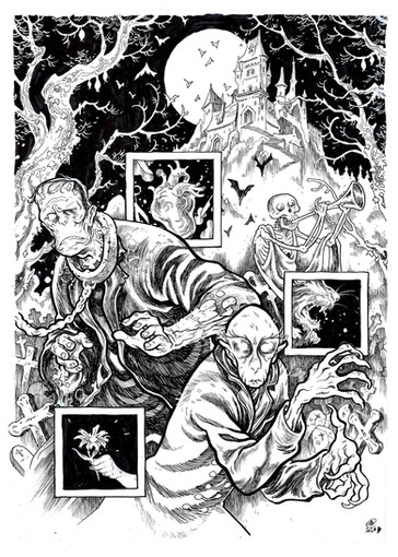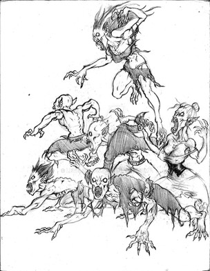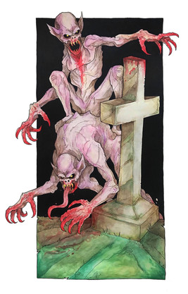 This is a painting I did of some feral Vampires lurking. This was done in pencil, pen and ink and then markers and gouache.If you would like high res prints of this as well as posters, and other formats you can get them here: society6.com/lvl9drow/designs