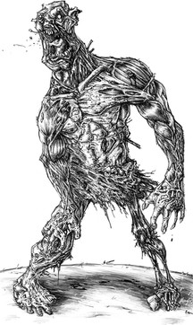 however, depending on the zombie's freshness, they can be dangeorus things. those like this guy are not so dangerous. fresh zombies from newly dead people are more so. they can act without the limitations of pain nor instinct. the human body actually holds a surprising amount of strength. we just can't use it because of our pain and instincts protecting us from inducing unecessary harm.