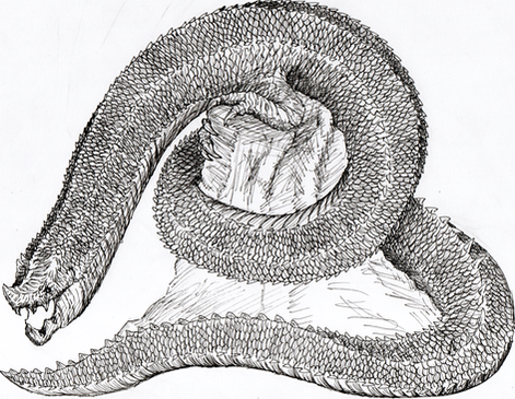 ......if i have but one critique, it is the trail. reminds me too much of a movie caleld king cobra; b hack movie, but the oversized snake was a mix of cobra and rattler, and had a rattler's tail, like this guy. love the side spikes though, just like the more primitive constrictors.