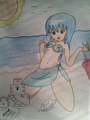 #beach #blanc #swimsuit #ideafactory #hyperdimensionneptunia #compileheart #coloredpencil #topless