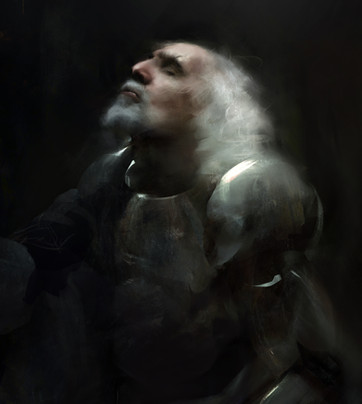 There is an intimidating atmosphere to this piece, and intensity that comes through in the pose and expression on his face. Excellent.