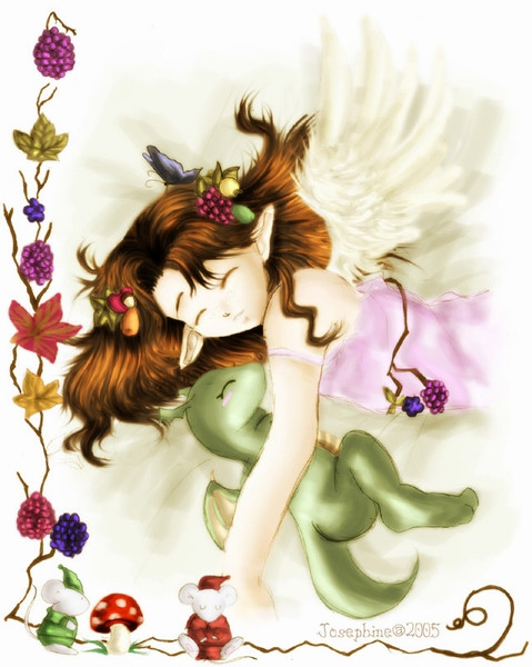 I'm sure he is a blessed kid. ^-^ He's so cute! Nice job on the transparent wings and coloring.