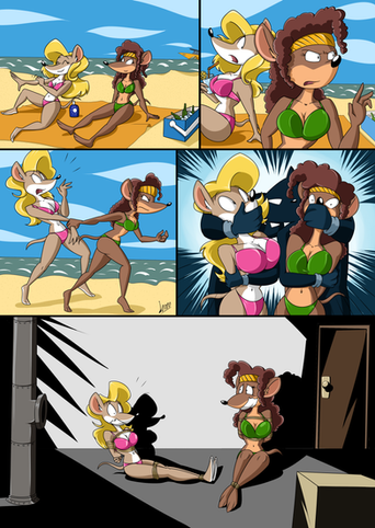 I love the facial expressions at the beginning and end. The captive's look of defiance before the gag stuffing, and then the captor's look of taunting afterwards, are both really perfect, and really funny. (I say captive and captor, because I don't remember names).Β