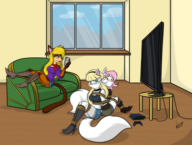 When ladies want to play some video games, you shouldn't mess with them. Unless you'd like to end up bound with dozens of scarves. Vol stays away, bgeacuse he is a smart guy. Rutger wasn't smart enough though... or was he?A commision for