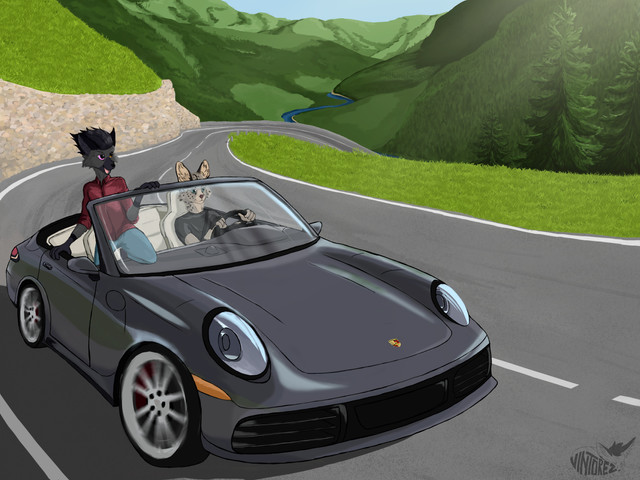 #car #fanart #convertible #crossover #porsha #silverhand #cyberpunk2077 #v #cp2077 #johnnysilverhand #porsha_crystal_sing2