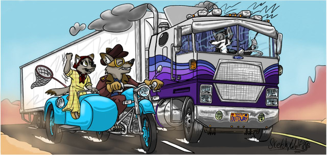 #anthro #car #cartoon #chevrolet #cigarettes #corvette #dog #flames #hotrod #stingray #wolf #fennecfox