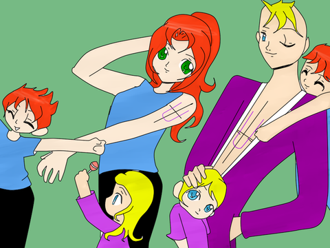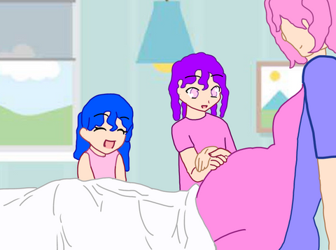 Finland having his children feel their sisters kicks. Ladiona and Sealand are very happy.