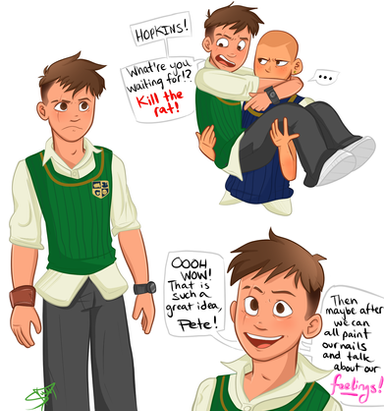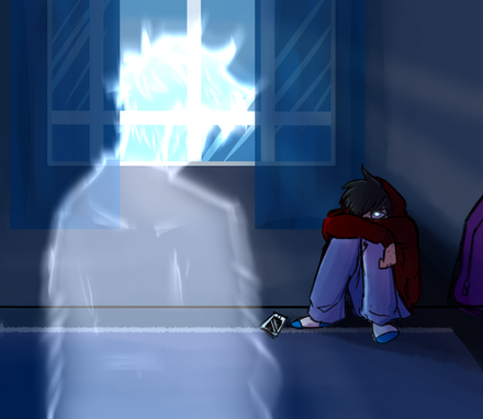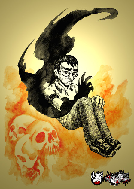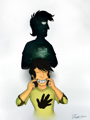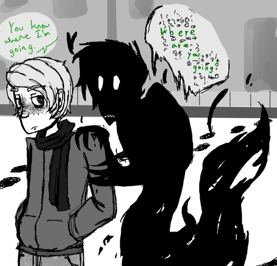There were other shadows lurking around him before I decided on just the one, I wanted to exemplify the anger, mistrust and coldness of Ty. This one shadow mocks him and tears him apart, compared to the other ones they aren't as bad.