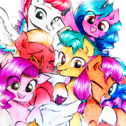 #mlpmylittlepony #mlpgeneration5 #sunnystarscout #izzymoonbow #mlpg5fanart #hitchtrailblazer #pipppetals #zippstorm