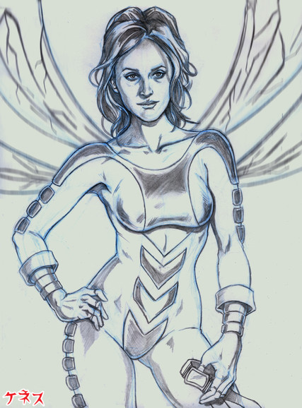 A bit of practice in the tablet bought me, on each page he wrote suggestions, this is page 1.Theme: Insect Girl