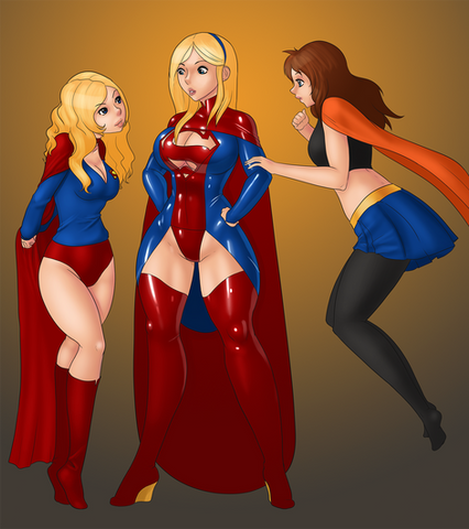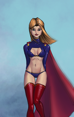 Oh yes, I'd also seen that one (Powergirl) and fav'ed it too. Actually like it better than the Supergirl version(s). Soooo great! Only problem with it is that as in so many cases, PG gets such crummy boots. I wish her initial artist had never given her the cuffs on boots or gloves. How about another view of PG in same 'tard but with sleek, snug, high-heeled, white thigh boots?