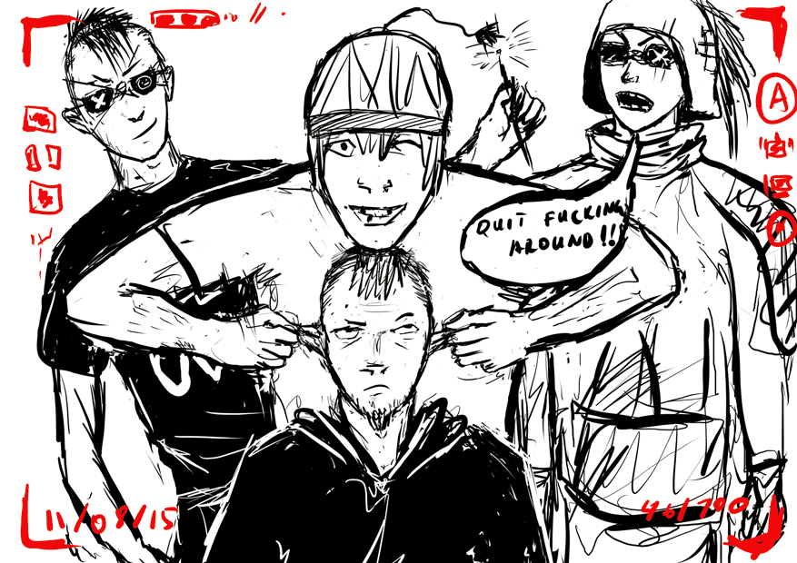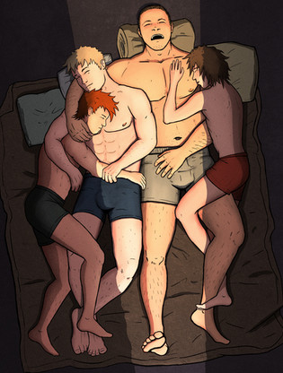 ...or ways to amuse yourself at the expense of your sleeping friends. One would usually go with drawing dicks on their face, but the smokerβs mug could hardly be made worse.Initially I just wanted to practice drawing folds and then it kind of escalated.