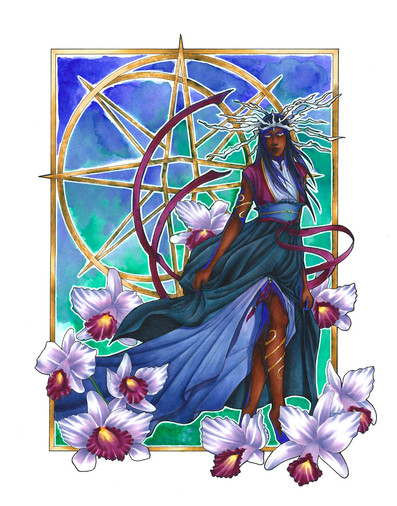 This work is inspired by Solitaire, the Tarot reading medium from the James Bond novel "Live and Let die".In a vain attempt to appeal to the fantasy market I substituted a pair of tiny dragons for the budgie in the previous versions, to no avail alas.