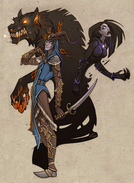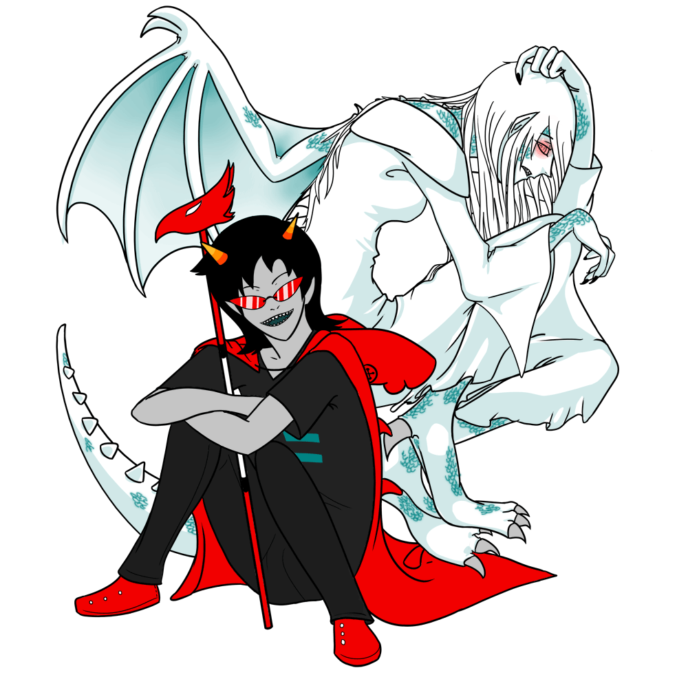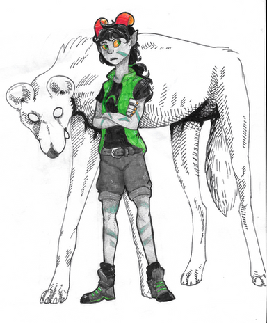 More rough drawings! I promise I\'ll have more polished work up soon!!Designed an ancestor for my fan troll before bed the other day, along with a fully grown version of her lusus, which is some kind of psychic dire wolf.