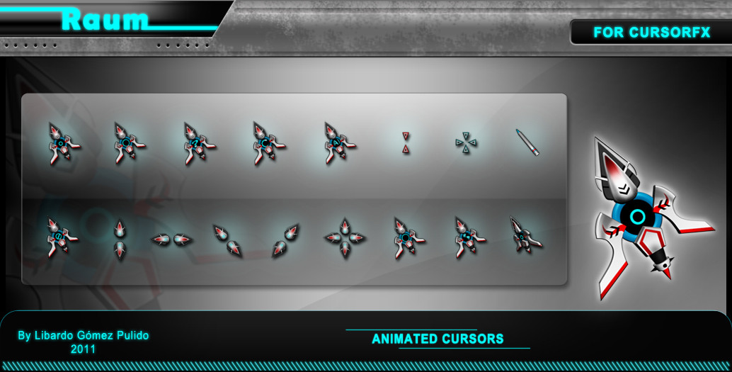 Well my real name is Libardo, thank you very much for the nice comments, friends this cursor is only for cursor Fx, the software is free to download. And the robot design was made of my inspiration, ever I`m trying originals skins and works, all my previews was made in photoshop and the cursor in 3ds max. You can see other robots in my Wincustomize gallery here: [link]