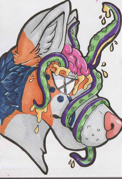 #coloured #traditionalart #monster #graffiti #originalcharacter #bleeding #blood #canine #furry #furryart #gore #guts #knife #marker #markerdrawing #maw #monsterdesign #psychedelic #psychedelicart #ribbon #symbolic #symbolicart #symbolism #teeth #trippy #furrycharacter #caninecharacter #markerstraditional #markersillustration