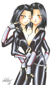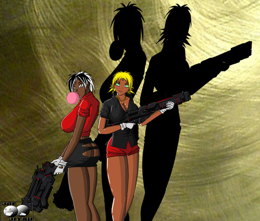 I love this pic - great cheesecake girls in wicked outfits and beautiful weapons! Must fave!