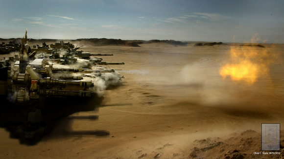 Should have used the Smudge effect lightly to give it that.... umm.. Heat exhaustion from the ground for the... background. you know what i mean.. the the.... .