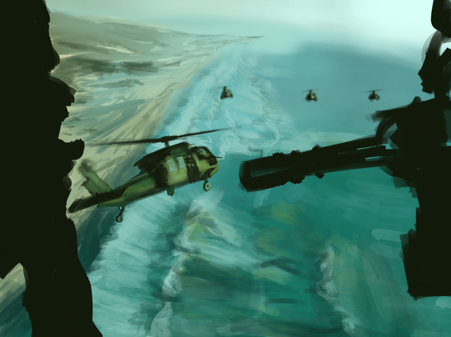 i think this is my favorite work by u. the heli's look superb! the ground is amazing. very beautiful work!