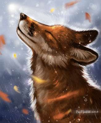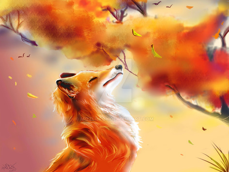 FINALLY done with this! It's something I started last autumn after seeing lots of cute images of dogs jumping in leaves. I thought why not foxes too, especially with the lovely matching colours! I wanted to just combine lots of things I personally enjoy painting and looking at in this one, I've really fell in love with oranges too lately and I always enjoy working on some rim lighting or strong lighting effects in general. And naturally it had to feature a fox as the main subject, this one looks pretty happy to be prancing among the leaves!