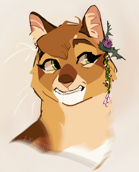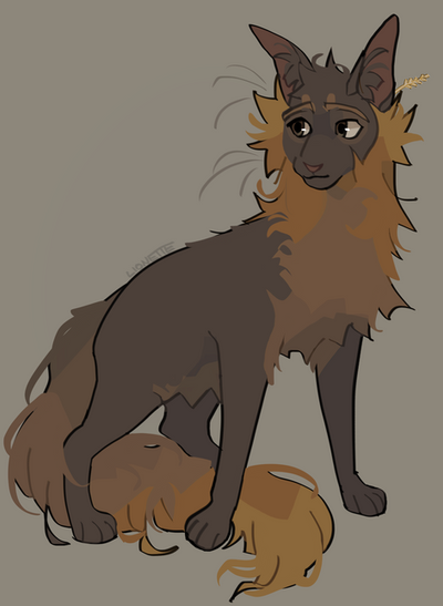 since i drew squirrelflight, i couldn't just not draw her sister. i once again used the old(ish) design i had for her, i just made small changes to it like adding some very subtle ginger to some partsmy designs for canon wc characters are free to use btw!
