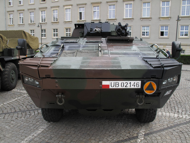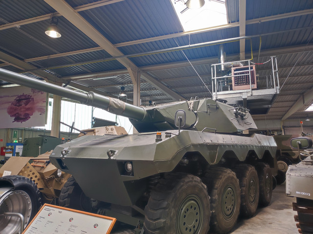 The Spähpanzer Luchs (German: Lynx) is a German 8x8 amphibious reconnaissance armoured fighting vehicle (Spähpanzer) in service since 1975 by the German Army. It was developed by Daimler-Benz between 1968 and 1975, replacing the M41 and the Schützenpanzer SPz 11-2 Kurz.The all-wheel drive Luchs made by Rheinmetall is well armoured, has an NBC protection system and is characterized by its low-noise running. The eight large low-pressure tyres have run-flat properties. At speeds up to about 50 km/h all four axles can be steered. As a special feature the vehicle is equipped with a special rear-facing driver with his own driving position. Up to the first combat effectiveness upgrade in 1986 the Luchs was fully amphibious and could surmount water obstacles quickly and independently using propellers at the rear and the fold back trim vane at the front.