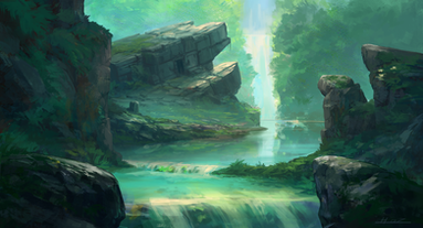 #blue #buildings #environment #fantasy #flood #forest #green #liam #ruins #trees #walkway