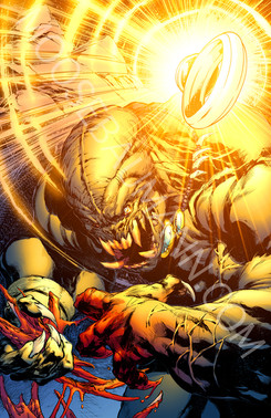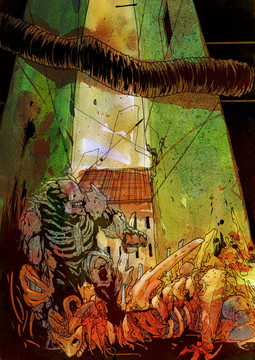 I don't know what that is but that's an awesome beastie. I love the rendering on his (it's?) muscles... they're extreme like Bisley muscles but somehow much more believable. Pretty damn good