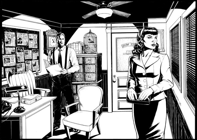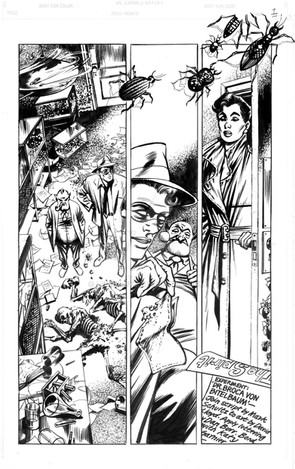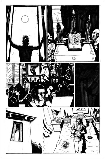 The first page of a two page Future Shocks story for 2000ad - my first ever solo published work at 18. Don (Lawrence) suggested the spider-web layout which spread over both pages. I no longer have the originals, they were lost a long time ago, so these were scanned from photocopies.L.