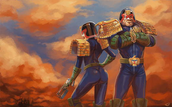 Is it just me, or does Judge Dredd where some rather tight pants? Haha.