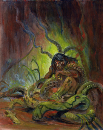 This was a spread from my Manthing run for Marvel in the 1990s. I recoloured it recently for inclusion in my book The Shed, a tribute to Jeff Jones and the other artists of The Studio, Bernie Wrightson, Michael Kaluta and Barry Windsor-Smith. This piece was directly inspired by those guys.Related content