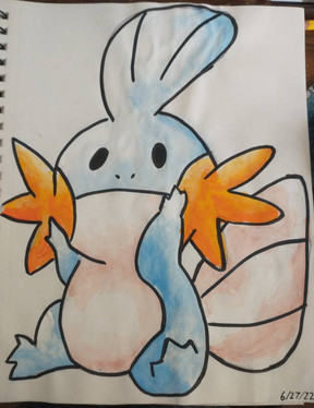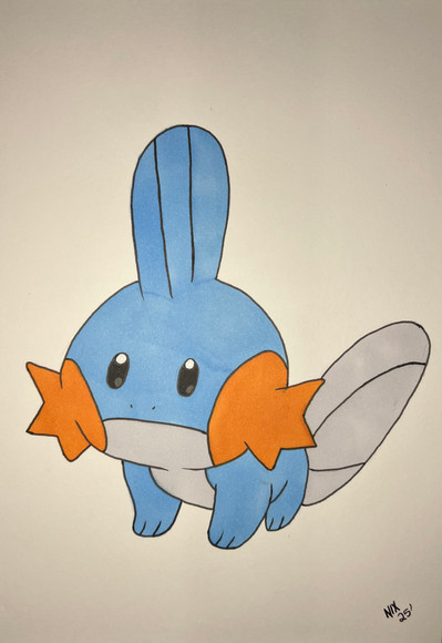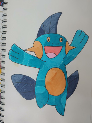 #anime #drawing #fanart #ink #mixedmedia #mudkip #nintendo #pokemon #videogames #watercolorpainting #pigmamicron