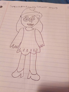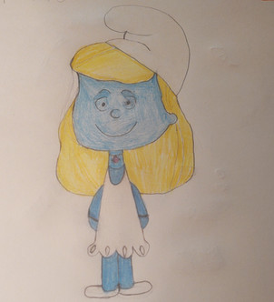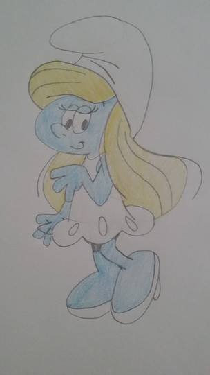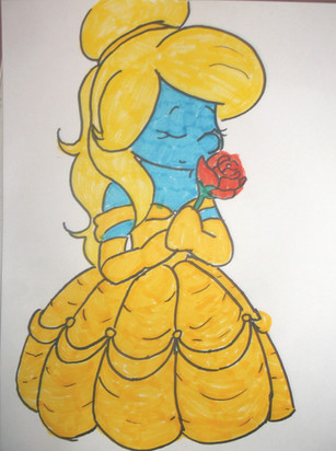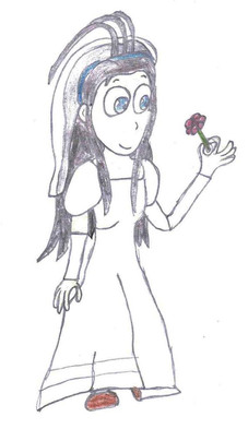 But she's meant to have: blue body, brunette hair, red rose, red and black outfit, black shoes, white hat.