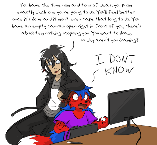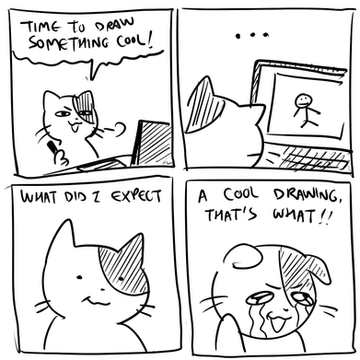 I'm still debating if horizontal or vertical is better to post these comics. Tumblr is vertical right now, but I think horizontal suits dA better.Anyway, I sometimes have a hard time calling myself an artist, which I guess is how this comic came to be. Sort of poking fun at myself, but in good humor. I like drawing silly cute things, but I also know I need to work towards progression. Hope you enjoy!