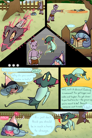 Growing up in Missy's daycare center along with the other orphans has made him want to stand out between the others and have a name. As such, he became a very loud and noisy pokemon, always making trouble, much to Missy's dismay.
