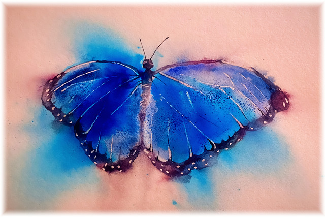 That's lovely. The butterfly is painted in a beautiful way. The colors of the wings are wonderful.