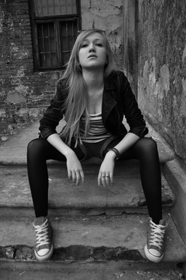 Turning the model slightly so that her feet are pointing to a 4o'clock position and pulling back just enough to give some breathing room for negative space would really improve upon the composition and open up the picture and create a better sense of eye flow.