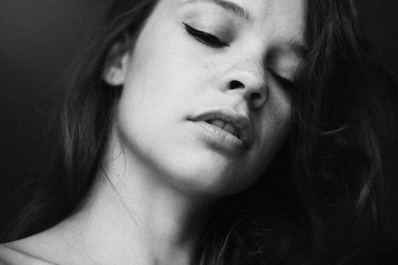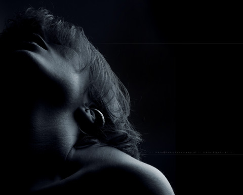 I'm not a photography expert, but I am studying visual arts, so I'll do my best to help. (: Ah I just, I think it's gorgeous. The model's beautiful, the 3-quarter view fits really well. The wisps of hair add flow from the top of her head down. The teeth slightly barred is a great effective too. I just feel like her eyes are a little strange, like they should be either relaxed, or in distress, and right now they're somewhere in-between, which makes it harder to see the emotion being shown in the portrait. The black and white feels really natural. Well done!