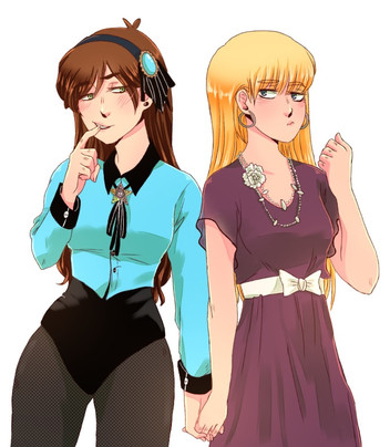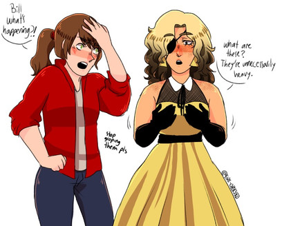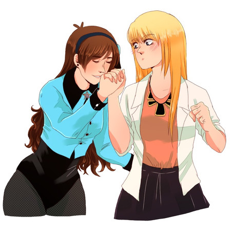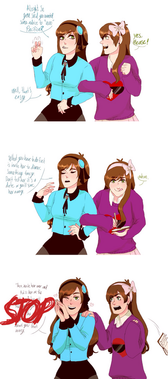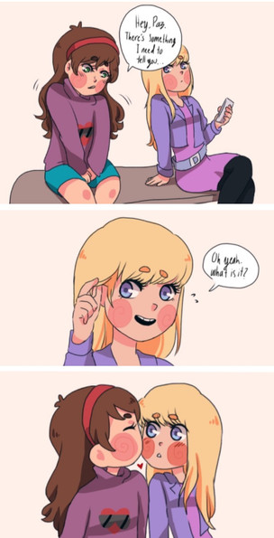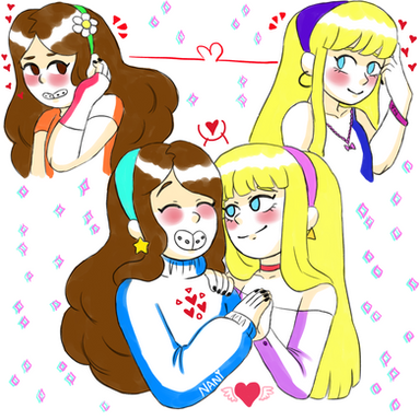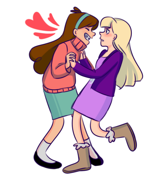 ignore the title blehh“Can you make another with a teenaged Reverse!Pacifica and Normal ‘verse!Mabel giving each other a sweet kiss?”