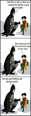 LOL!! It's sad because I can picture Batman's voice from the animated series saying that. "That's because Speedy doesn't WHINE!" Makes me giggle.