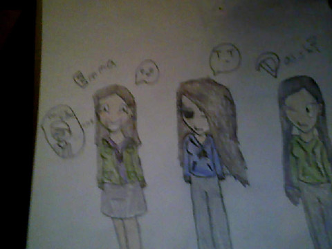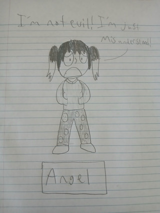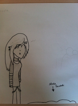 I have no name for this character. I can't think of one.She is supposed to have a silhouette of a Bull Terrier tattooed on her right hand, because she loves dogs. I can't draw, though, so it looks a bit more like...nothing, really.