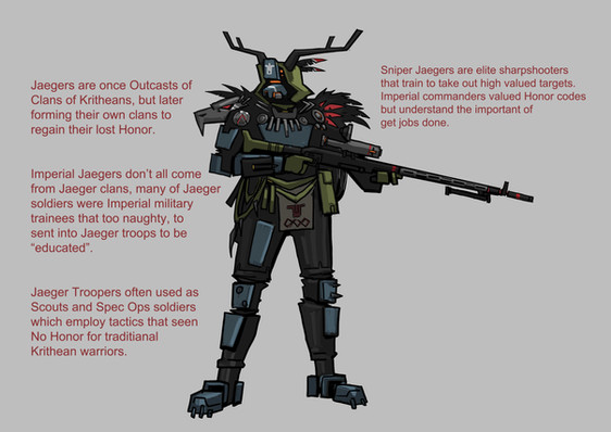 Jaeger Alphas (right 1st) are skilled sharp shooters to lead dangerous rouges that formed Kirethea Jaeger Force, they may be ruthless but they kept those wolf hearted shadow warriors in check, and they don't fear join combat with their men.-